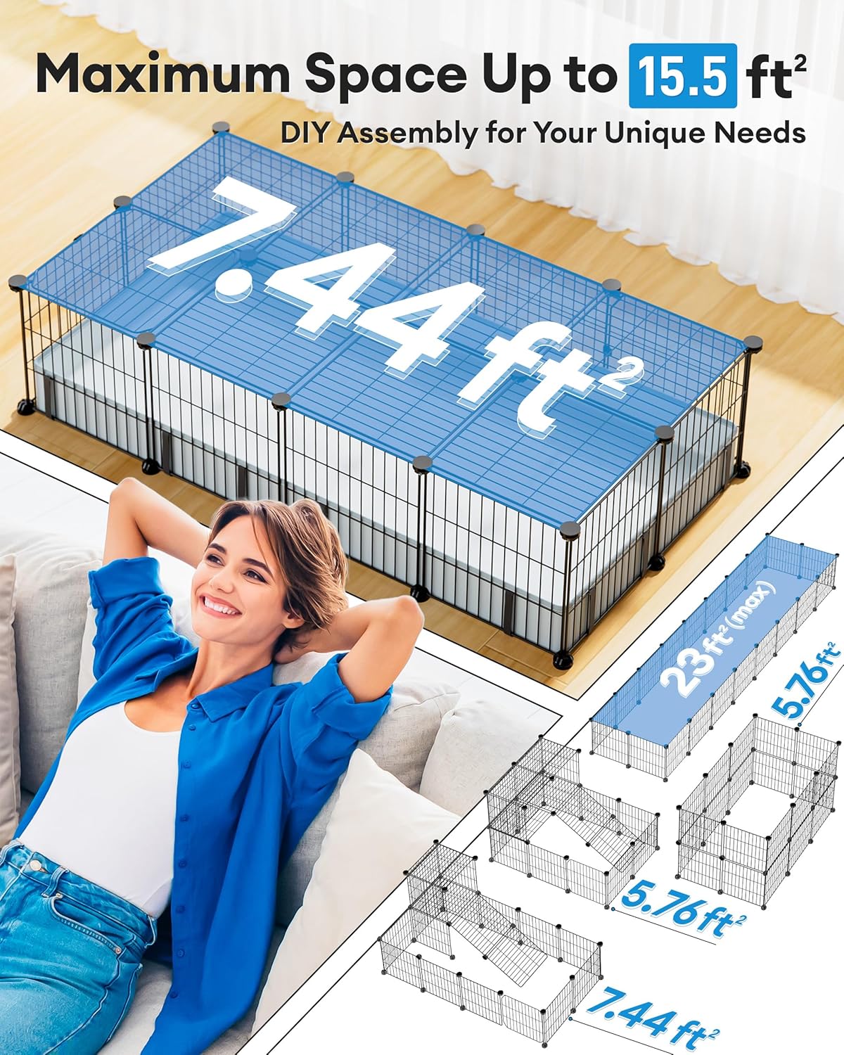 BUCATSTATE Guinea Pig Cages with Floor Mat, 20 Panels Guinea Pigs Playpen with Top Cover, Metal Rabbit Cage Indoor for Hedgehogs, Quail, Chickens