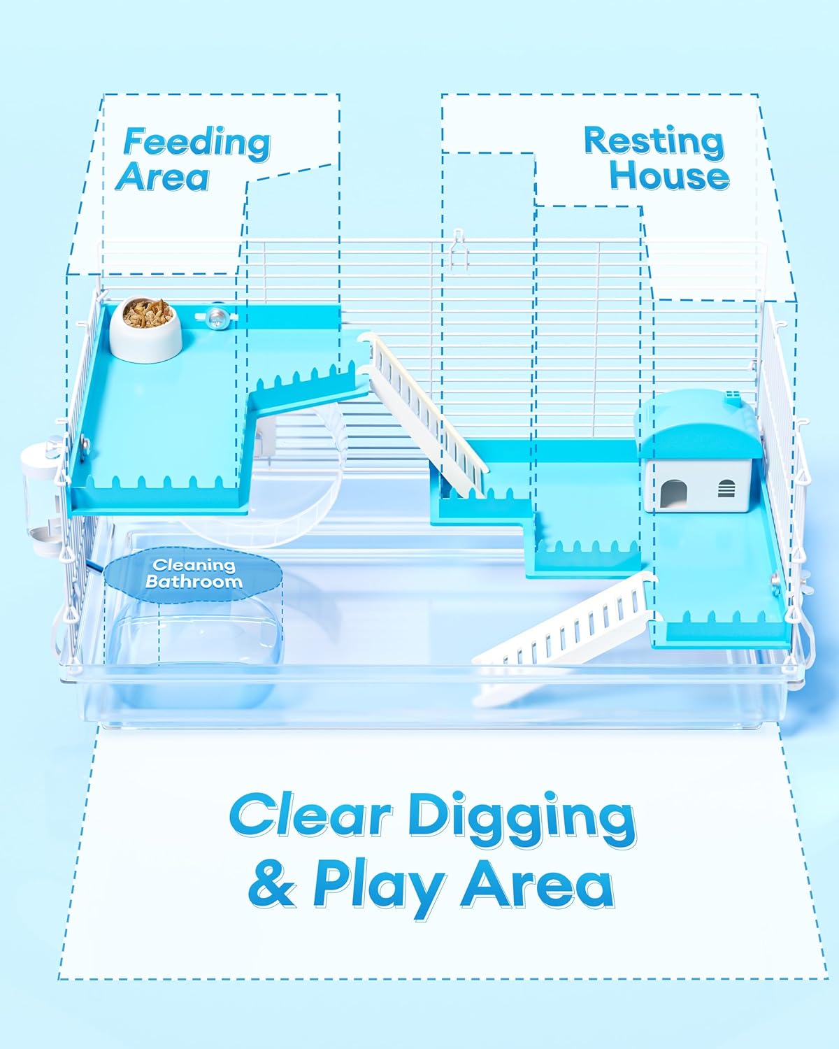 - 【Easy Assembly】It is designed with top & bottom snap clasps for effortless disassembly, enabling thorough cleaning and bedding replacement in less time. The image gallery includes a step-by-step assembly video, which allows most users to set up the cage within 15 minutes without tools.