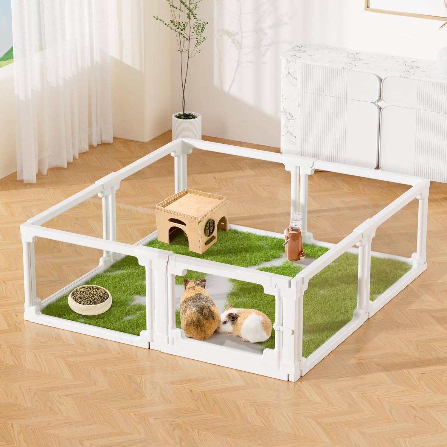 BUCATSTATE Acrylic Small Animal Playpen: 2 Size Options (7.8 & 15.5 sq ft) | Spacious Transparent Habitat, Easy Tool-Free Setup with Door for Rabbits, Guinea Pigs, Hedgehogs, Quail