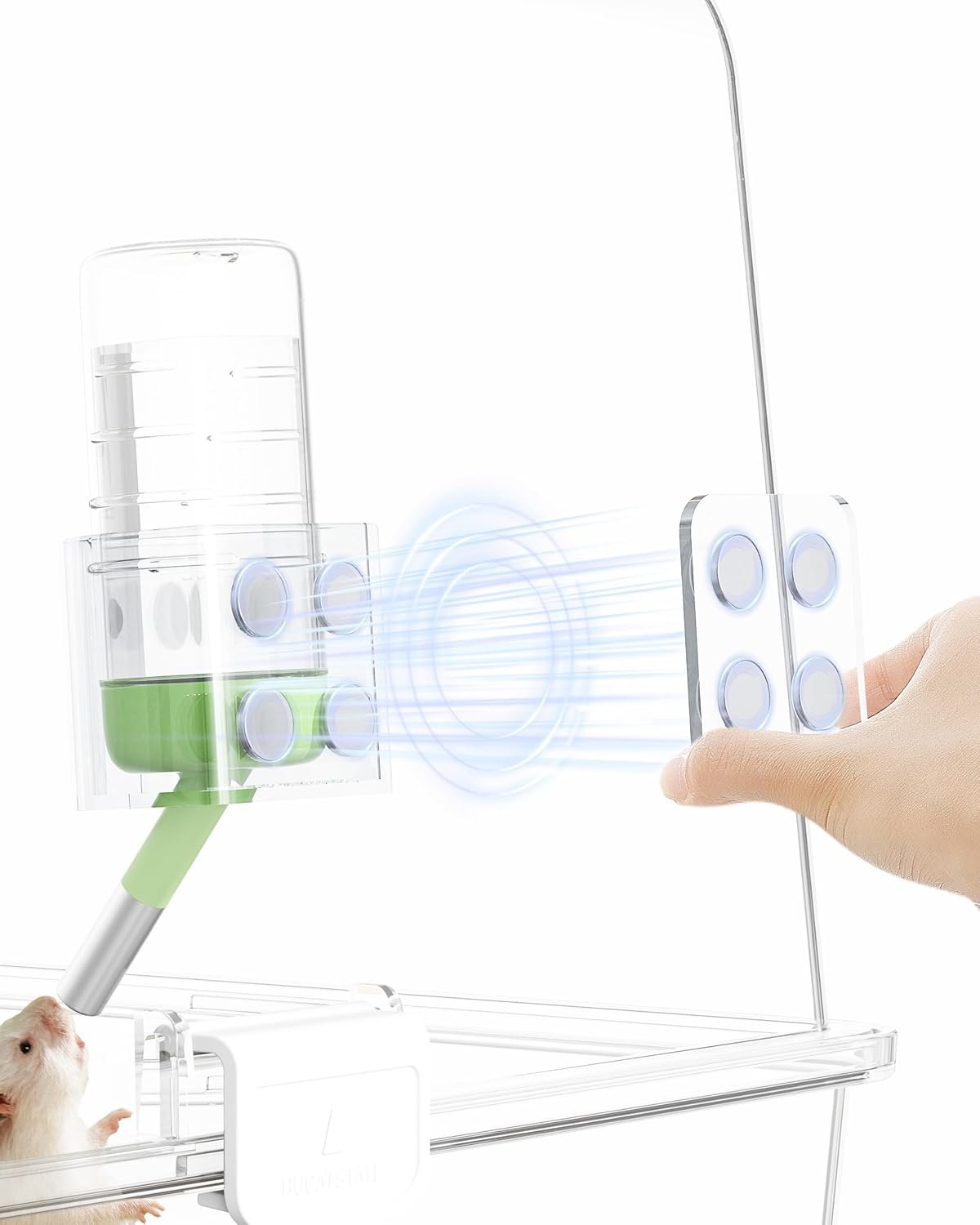 - Secure Magnetic Mount · Anti-Slip Design Equipped with high-strength magnets for a rock-solid grip on cages. Prevents wobbling or accidental detachment of water bottles, ensuring safe use even for active small pets.